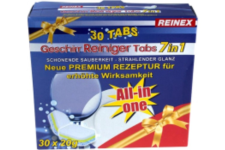 Основные характеристики Таблетки для посудомоечных машин Reinex Geschirr-Reining Tabs 7 в 1 (30шт)