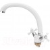 Крепится к раковине с помощью накидной гайки, которая располагается под мойкой. Она накручивается на нижнюю часть цилиндрического корпуса самого крана, которая располагается под раковиной. Высокий поворотный излив оснащен аэратором, который существенно понижает уровень шума. Управление водой производится при помощи керамической кран-буксы размером 90мм.