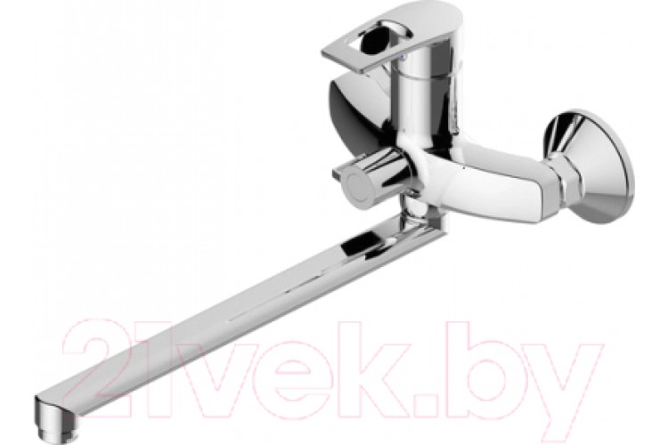 Смеситель для ванны и душа универсальный с длинным изливом. Корпус цельнолитой, излив штамповка нержавейка 350 мм. Дивертор механический керамика.
