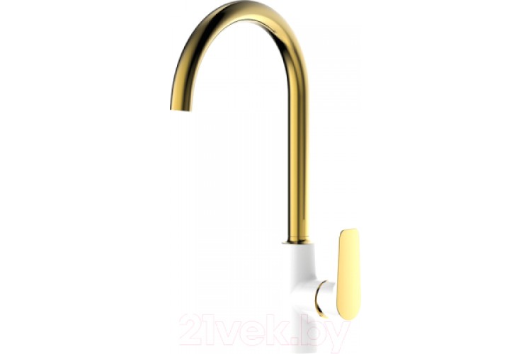 Элегантное сочетание белого и золотого цветов создает стильный продукт, который подойдет к интерьеру в современном и классическом стиле. Высокий излив (281 мм) поворачивается на 360 градусов, благодаря чему им удобно пользоваться на любой кухонной мойке.