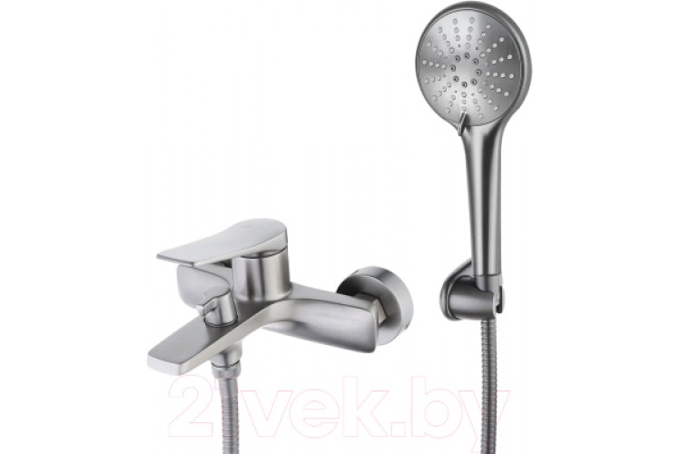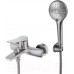 В комплектедержатель (поворотный), отражатели, присоединительная группа (для настенного крепления), переключатель (с керамическими пластинами угол поворота 90 градусов), душевой шланг (150 см), душевая лейка