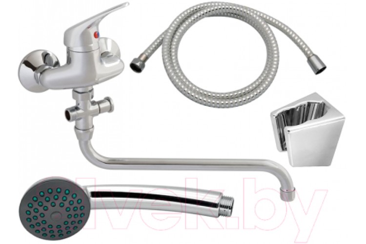 В комплектедержатель (с креплением), эксцентрики, отражатели, дивертор, смеситель, душевой шланг, душевая лейка