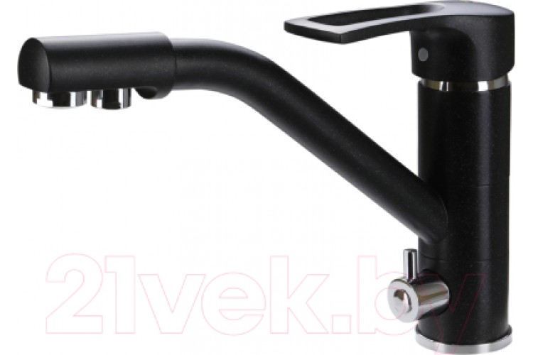 Смеситель для кухни имеет современный дизайн, прост в установке и использовании. Конструкция модели позволяет использовать подключение встроенных фильтров для подачи питьевой воды без установки отдельного смесителя. Стенки смесителя выполнены из высококачественной латуни, что обеспечивает его стойкость к перепадам давления и температуры, тем самым подчеркивает свою долговечность. Подводка для воды и крепеж в комплекте. Смеситель данной коллекции подходит для разных интерьеров и типов моек. Длина излива подходит для большинства бытовых кухонных моек. Поворотный излив оснащен аэратором, который существенно понижает уровень шума.