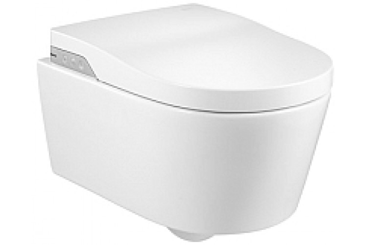 Roca Inspira In-Wash® - подвесной унитаз-биде с горизонтальным выпуском, безободковая технология Rimless. Требуется подключение к сети. Класс защиты IPX4.
